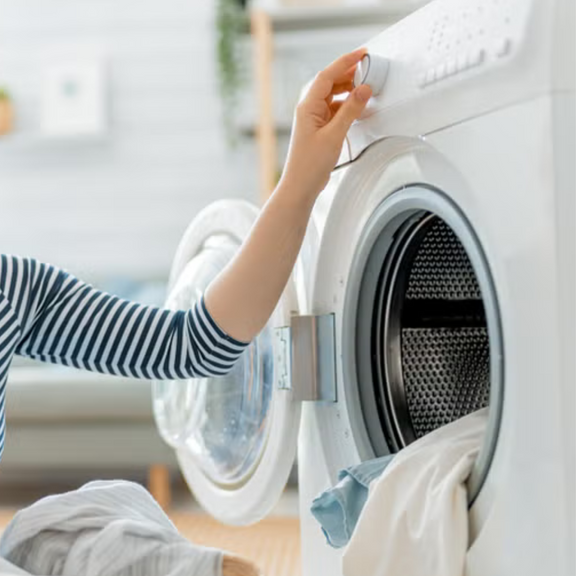 Just take out the internal support and toss in the washing machine on a cold cycle (30°C)